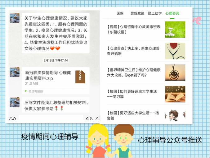 yl8cc永利线路检测中心辅导员关注疫情期间学生心理健康,注重对学生进行心理辅导,通过电话、QQ、微信等方式了解学生思想状态,帮助学生树立积极健康、理性平和的心态。辅导员改革创新班会形式,开展了“战役不迷茫、走出假期阴影、做有担当的新华人”等主题的班会,利用视频会议等提醒学生做到不恐慌、不造谣、不信谣、不传谣。积极构建学生、辅导员、学生干部、家长四级信息反馈机制,加强辅导员与学生的线上交流,尤其是对在校期间患有心理疾病的学生和疫情严重地区的同学,及时摸排学生基本情况,掌握学生心理动态,引导学生保持积极心态、从容应对疫情。
