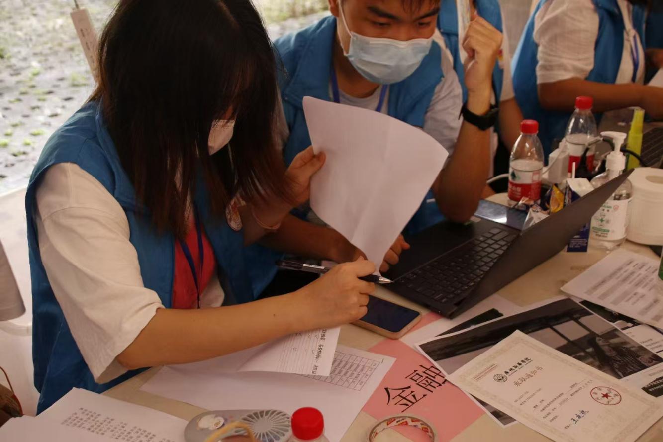 高建担任2022级助理班主任于报到日录入资料(右一)