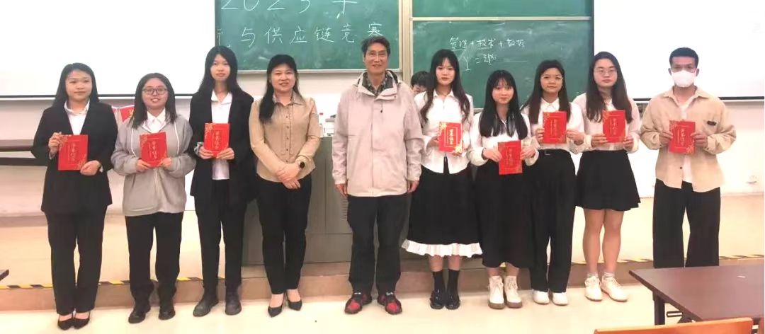 何杏莹在2023 年获得全国高校商业精英挑战赛物流与供应链竞赛校内赛团队二等奖(左二)