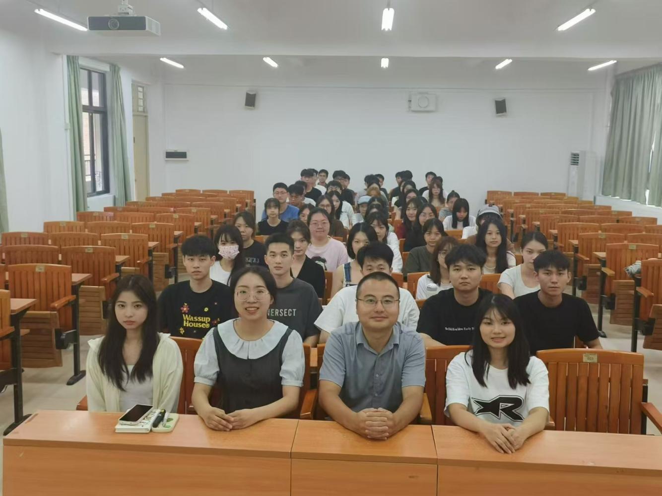 吴碧霞作为2022级电子商务E班班助开展新生开学班会(右一)