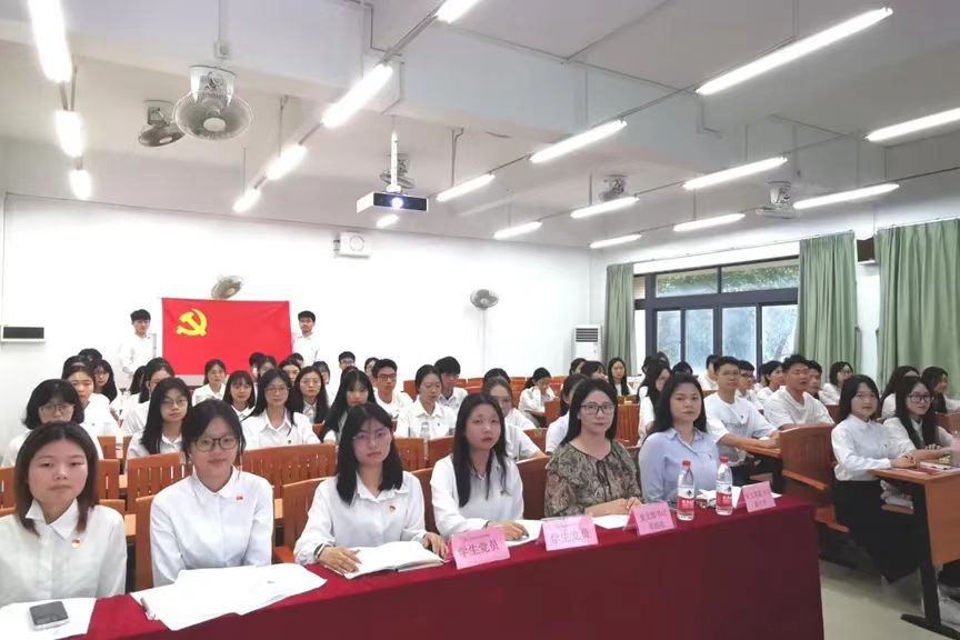 郭思华作为yl8cc永利线路检测中心学生第四党支部纪检委员在开展会议(左二)
