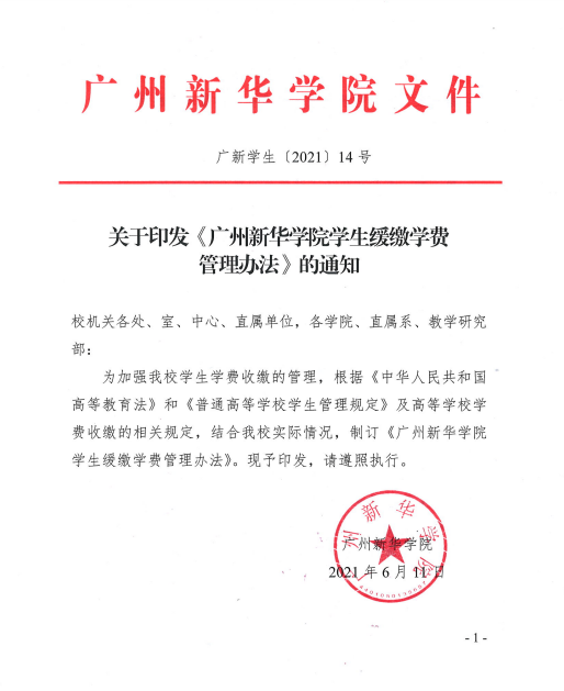 广新学生〔2021〕14号-关于印发《广州新华学院学生缓缴学费管理办法》的通知.pdf