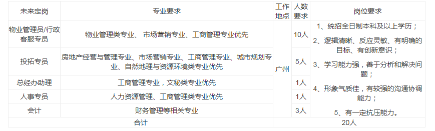 4)招募岗位:物业管理/总经办助理/投资拓展等/人力资源等。
