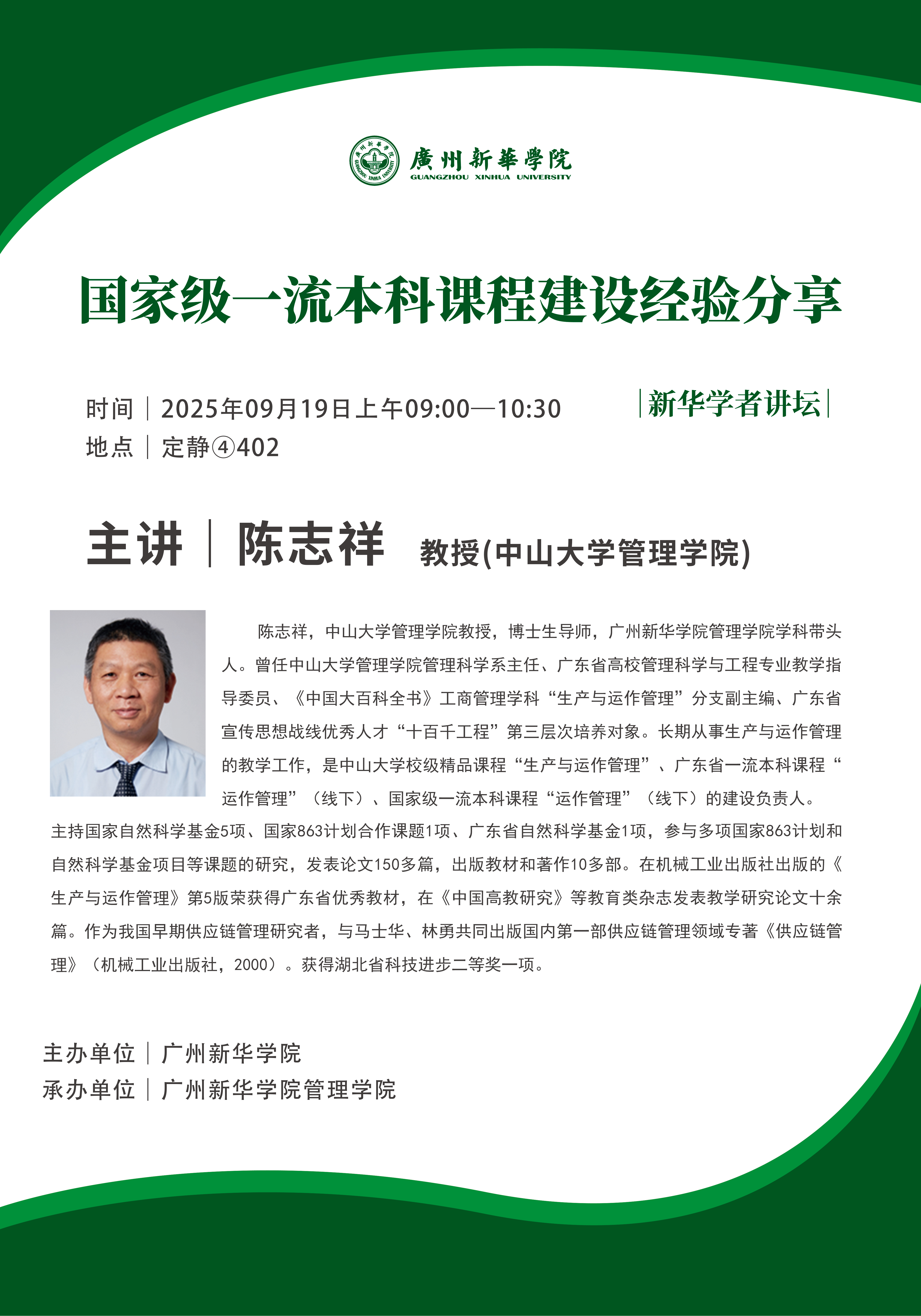 【讲座预告】陈志祥教授:国家级一流本科课程建设经验分享