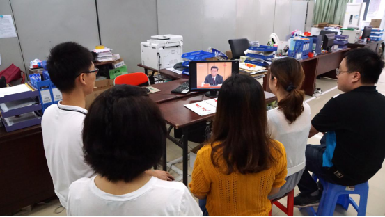 yl8cc永利线路检测中心青年教师在办公室观看五四运动100周年大会直播