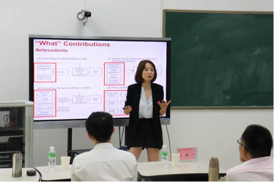 2019年6月17日上午,由中山大学新华学院主办,中山大学新华学院yl8cc永利线路检测中心、中山大学新华学院学科与科技管理处、中山大学新华学院教师发展中心承办的学者讲坛在我校东莞校区格物楼②B209举行。此次讲座特邀中山大学新华学院yl8cc永利线路检测中心唐娅客座副教授就“如何抓取和展开一个有意义的课题”进行交流探讨。我校yl8cc永利线路检测中心执行院长彭建平教授、副院长武亮副教授,电子商务专业副主任李晶老师,郭美文、王红旗等多位教师以及学生出席本次讲坛。