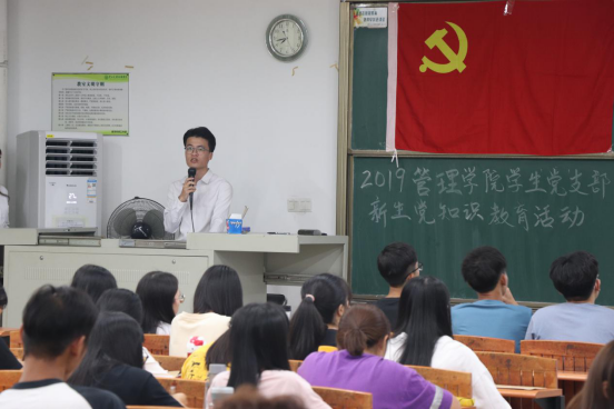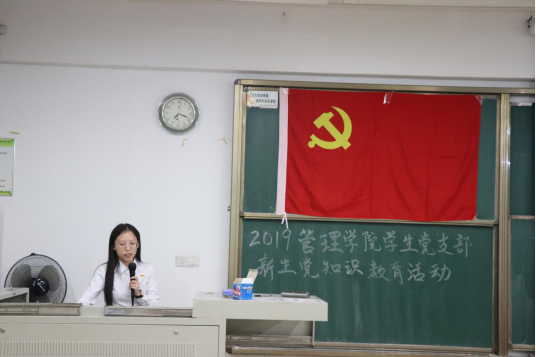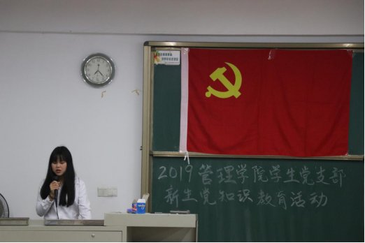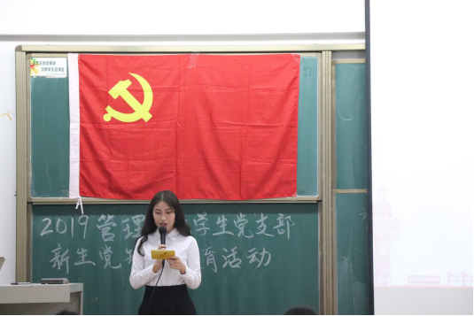 随后,学生党员龚加怡详细介绍了入党流程以及党支部的规章制度,让广大新生认识到发展党员必须严格把关,以严格的入党程序来保证新党员的质量,保证学生党支部党员队伍的先进性和纯洁性。
