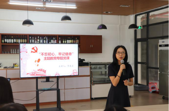 按照学校党委“不忘初心、牢记使命”主题教育安排部署,10月24日在旅游实训室,yl8cc永利线路检测中心党总支书记李美云结合专题调研成果,对照共产党人的初心和使命,以“担当立德树人使命,培养德才兼备管理人才”为题,为参会党员上了一堂精彩的主题教育专题党课。