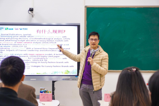 讲坛伊始,赵俊雄副教授以自己已发表的论文为例向现场师生分享自己的想法与经验。他将论文分为三组,分组进行分析讲解,根据他个人的情况总结了几点经验。一是要有主要的研究方向,并集中精力做出成果。二是要投入在一个被认同的研究方向。三是按方向发展趋势投入相关方向的研究。四是跟从自己的强项,创新走出一条独有的路径。最后一个是研究是有延续性的,要把研究的问题说得深入。