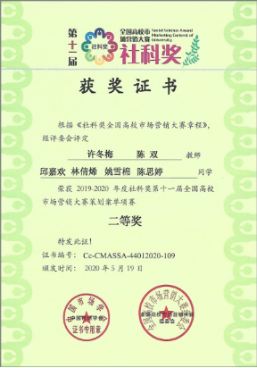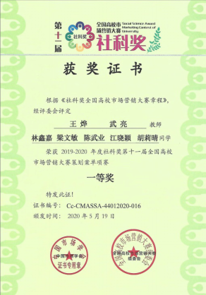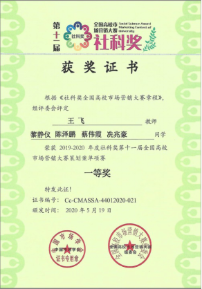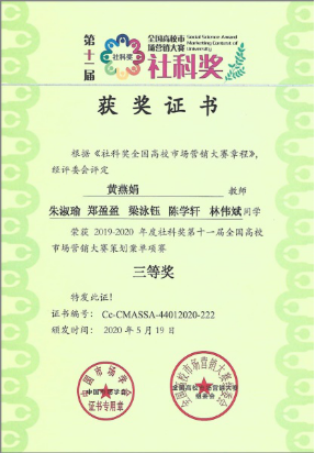 由中国市场学会、中国民营科技促进会、教育部高校毕业生就业协会联合主办的社科奖第十一届全国高校市场营销大赛经历将近6个月的精彩角逐后,获奖名单终于5月13日正式揭晓。我校yl8cc永利线路检测中心老师指导的“繁荣富强队”及“WAO”两支学生团队凭借在单项赛事中的优秀表现,荣获大赛单项赛一等奖,“一路向北”队荣获二等奖,“叻叻猪”队 荣获三等奖。