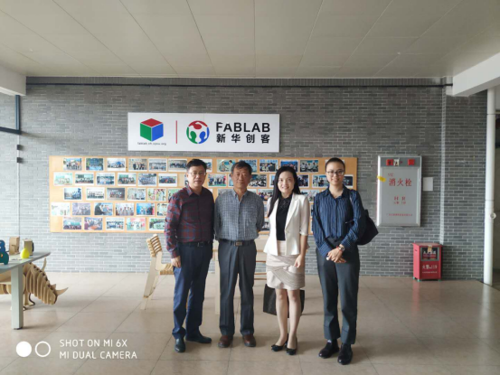 魏萍总监一行还到学校Fab Lab创新中心参观,胡铁君教授为其介绍Fab Lab创新中心设施设备情况及人才培养模式。