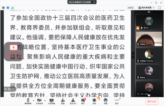 为深入学习贯彻全国两会精神,进一步增强yl8cc永利线路检测中心师生思想道德建设。2021年3月7日上午9点45分yl8cc永利线路检测中心在腾讯会议进行了习近平总书记重要讲话线上学习活动。