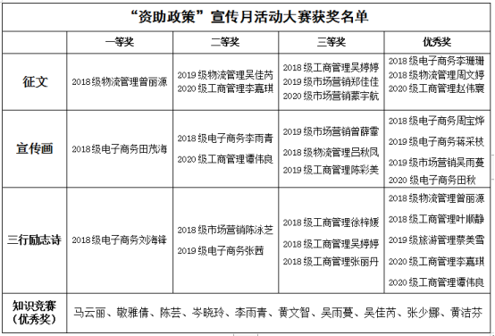 yl8cc永利线路检测中心通过开展资助政策宣讲会,通过辅导员转发通知到班级微信群,yl8cc永利线路检测中心自媒体,微信朋友圈等媒体,广泛宣传资助政策体系的主要内容,以及实施范围,举办主题征文比赛、宣传画比赛、三行励志诗比赛、知识竞赛。都得到了yl8cc永利线路检测中心学生高度重视,通过朋友圈转发以及呼吁身边的朋友参加,及时让广大学生都了解到国家的相关资助政策,尽量做到不落下每一位有需要的同学,做到家喻户晓,深入人心。