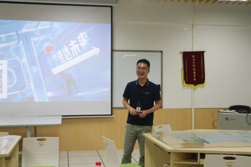 接着,各位企业负责人分别进行了实习招聘宣讲。东莞顺丰的陈宇轩经理分享自己对于疫情影响下就业形势及学生应该如何应对复杂多变的社会环境的看法。介绍了顺丰公司的整体企业概况,阐述了顺丰的人才选拔标准,最后对本次校园招聘的相关岗位信息及薪资福利待遇进行详细介绍,并代表顺丰对同学们表示热烈欢迎。陈经理边宣讲边与同学们热烈互动。
