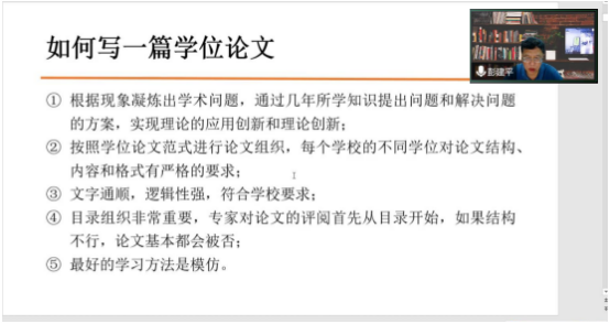 他重点对论文结构写作进行了指导,他表示一定要将论文的逻辑阐释清楚,把逻辑作为一条线,将大篇幅的文章串联起来,形成一定的结构,这样的论文是清晰的并具有可读性的。同时论文推导的过程是否清晰,需要有理论、文献与逻辑来支撑。