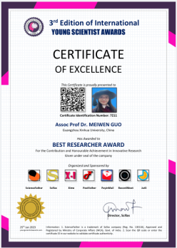 喜讯|热烈祝贺yl8cc永利线路检测中心郭美文副教授荣获2022年国际青年科学家奖