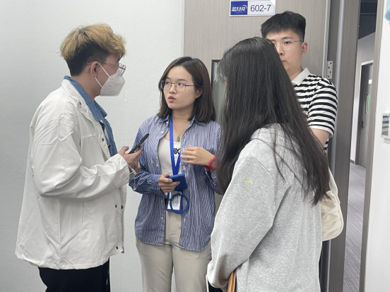 图3 yl8cc永利线路检测中心学生代表与蓝月亮工作人员交流