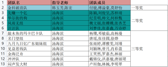 我校共有24支队伍,72人参赛。参赛者除了金融科技专业的学生,还有来自工商管理,互联网金融,计算机科学与技术,财务管理,经济学,商务英语,汉语言文学,法学等专业的学生。金融科技专业毕秋香,陈宏,韩玉芳,汤海滨,郑潇五位专业教师给予了专业指导。最终我校共有1支队伍获得一等奖,4支队伍获得二等奖,7支队伍获得三等奖。韩玉芳,陈宏,汤海滨老师获得“优秀指导老师”荣誉称号。