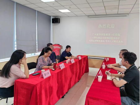 在访问期间,张祖奎向广州新华学院的代表团介绍了电子商务人才孵化中心及佛山基地的基本情况。这一基地是广东省在电子商务领域的重要力量,为培养和支持电子商务领域的人才提供了重要平台。广东省电子商务人才孵化中心由广东省电子商务协会与广东众创前锦数字科技发展有限公司联合组建,均由广东众创前锦数字科技发展有限公司负责投资建设运营。中心主要任务提供电商人才就业创业、电商人才培训、电商供应链选品、电商产教融合解决方案等服务。中心发起“百校千企万人”电商实战人才就业创业孵化计划,旨在融合校企双方的需求,与100家以上大中专院校共建在校内校外建立校园企电商人才孵化基地及实践教学基地,赋能1000家以上的电商企业组建完善电商团队,培育孵化10000名电商实战人才。佛山基地依托于位于广佛交界电商核心聚集区——广佛商贸城,向大湾区城市辐射覆盖;校内基地依托于各院校实训场地建设运营,覆盖每个合作院校。