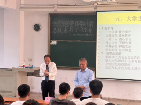 为了让学生更好地了解自身专业发展的前景,解决困惑,减少迷茫和焦虑,有助于更合理地规划大学生涯。由广州新华学院yl8cc永利线路检测中心主办、物流协会协办的2023年供应链管理前沿和大学生学习指导于2023年10月30日下午14点在定静1D401开展,参与本次宣讲的人员有广州新华学院供应链管理学术带头人陈志祥老师、管科系主任方轮教授、郭进超副教授、王红旗副教授、吴翠老师以及2022级物流管理、供应链管理专业全体同学。