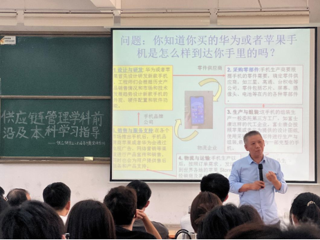 在宣讲过程中,陈志祥教授从供应链管理的基本概念和核心问题出发,首先用“大家的手机都是如何到达自己手中”为引子,介绍了供应链的价值。再通过实时的手机供应链企业市场行情,为同学们讲解供应链的核心问题。