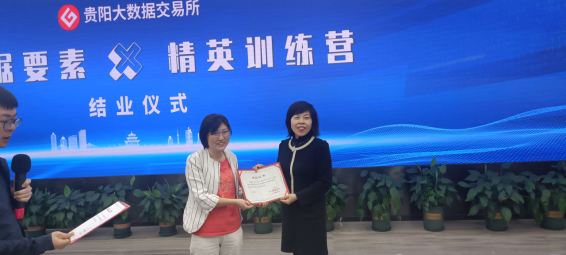 最后,在“数据要素×精英训练营”的结业仪式上,贵阳大数据交易所的总经理叶玉婷为参训人员颁发了结业证书,她表示,数据作为一种生产要素,已成为驱动我国经济发展的关键动力。人才作为新质生产力的核心要素,其地位和作用愈发凸显,随着数据要素市场的加速发展,数字经济正以前所未有的速度崛起,而数据要素高层次人才,正是推动这一进程的核心力量。然而,现有人才培养规模和质量尚不能满足这一巨大的需求。因此,贵阳大数据交易所组织开展本次“数据要素×精英训练营”,目的是帮助高校教师了解数据要素市场运作机制及数据应用场景,创新协同育人模式。