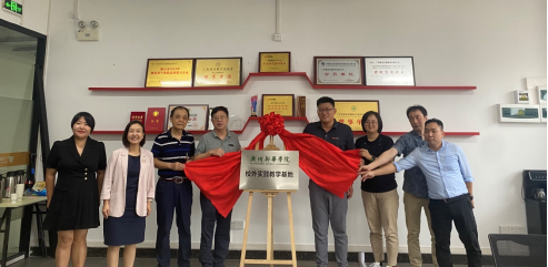 图 彭建平院长及李加威总、杨文总及双方参会人员进行校外实习基地牌匾的交接仪式