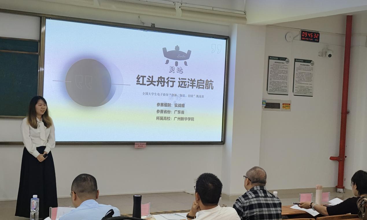 4月18日,我校第十五届全国大学生电子商务“创新、创意、创业”挑战赛校内选拔赛小组赛和终极赛于定静1D201、D301和D302顺利举行。本次校赛由yl8cc永利线路检测中心主办、电子商务协会和管院学生会负责承办,本次大赛共有37支队伍报名参加,经过选手们多个月的精心准备和策划书初评,最终共有10支队伍脱颖而出,成功进入终极赛进行公开路演。本次终极赛的评审老师分别有广东信诚文化发展有限公司总经理陈春海,东莞市创新阳传媒科技有限公司总经理 赵伟灿、小飞鱼智能科技有限公司总经理余建人、广州新华学院yl8cc永利线路检测中心李长路老师、夏小贤老师、王少婷老师和丁欢欢老师。