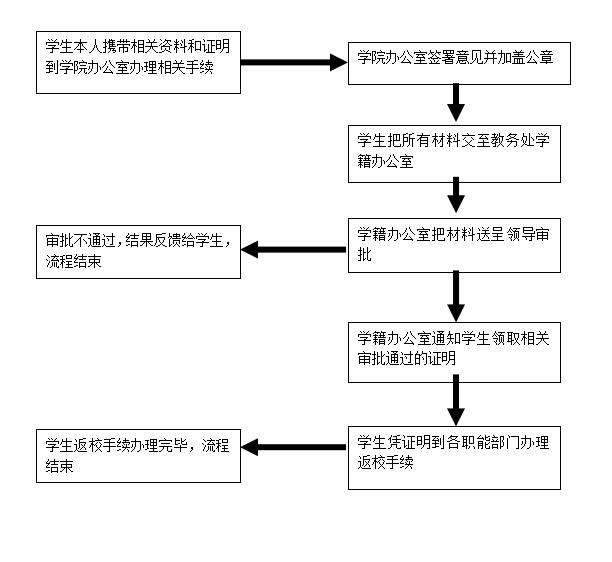 (4)办理完成后,反馈审批结果给学生本人。学生到学籍办公室领取《广州新华学院学生复学返校手续单》,凭复学返校手续单到各职能部门办理相关手续。