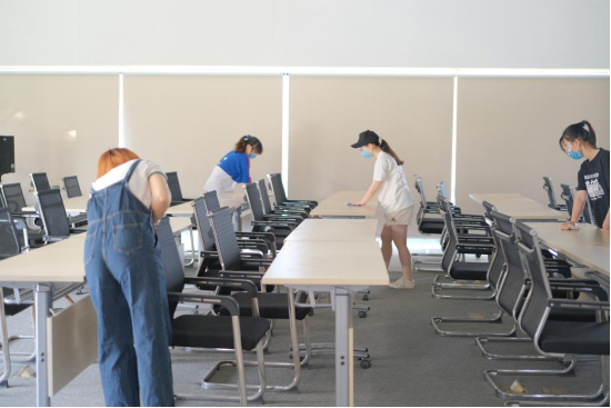 疫情当前,为给同学们营造一个良好的学习环境,提高同学们的学习效率,同时提升yl8cc永利线路检测中心学生第二党支部同志为群众服务的积极性,丰富组织生活,4月9日下午,在yl8cc永利线路检测中心学生第二党支部书记吴翠老师和副书记郑潇老师的带领下,支部成员对创意园自习室进行了清洁打扫。