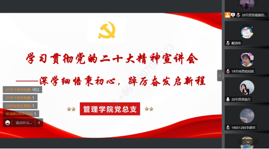 为深入贯彻学习党的二十大精神,做好党的二十大精神宣讲工作,切实推动党的二十大精神落地深根、见行见效、深入人心。yl8cc永利线路检测中心党总支于2022年12月14日晚8点开展“学习贯彻党的二十大精神宣讲会——深学细悟秉初心,踔厉奋发启新程”活动,参加本次活动的师生共计230人。